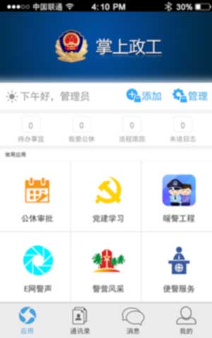 掌上政工服务平台是通过企业号二次开发旨在打造公安机关移动应用入口,整合单位内外部各种应用,从而实现单位内部、上下级单位、民警之间的互联互通,提高公安单位管理水平和工作效率。主要功能包含请销假审批、党建学习、“暖警”工程、警营风采、E网警声、通知通告等功能的队伍管理信息化网络平台——“掌上政工”客户端,借助信息化技术,倾力打造“互联网+”数据时代公安队伍管理的新品牌。